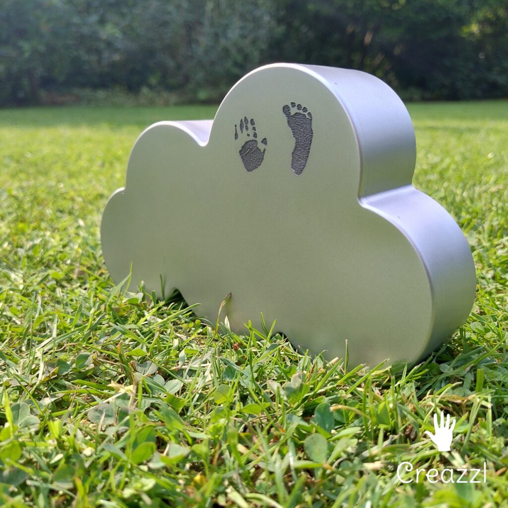 Deze urn kan helemaal naar wens worden aangepast met afdrukjes in of op de wolk. Ook kan er tekst/naam of data worden gegraveerd.
